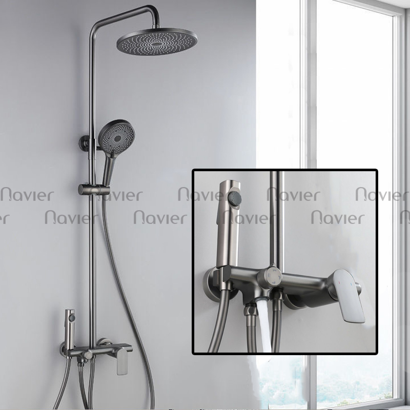 Siêu Sale Thanh Lý Sen Cây Tắm Nóng Lạnh Đồng Thau Mạ Xám Tĩnh Điện Cao Cấp Navier NV-822X