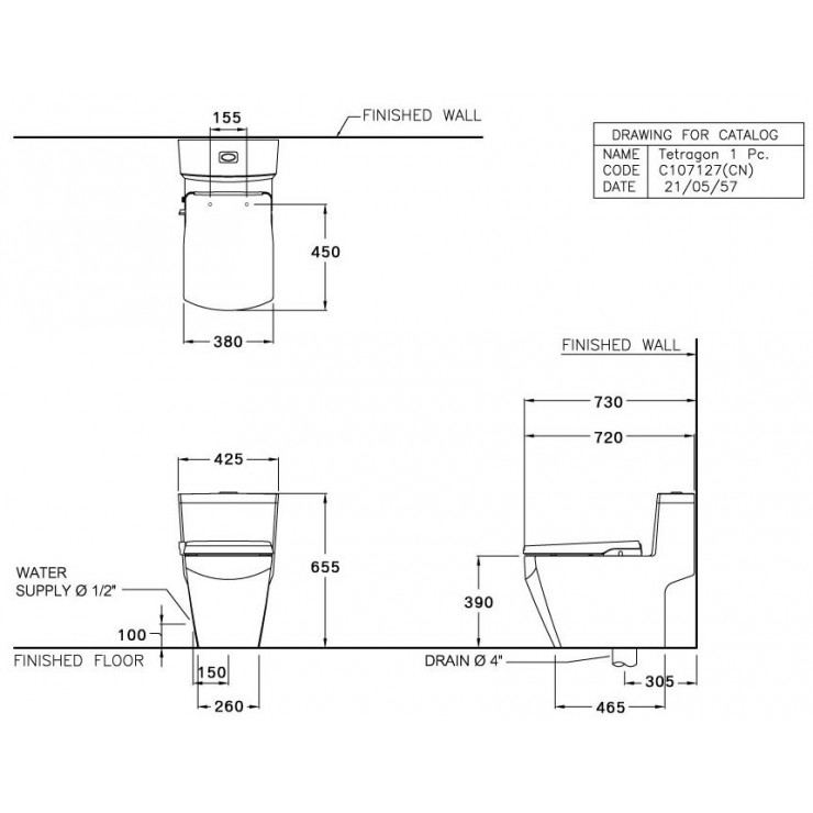 • Thiết kế: Thân vuông dài, thoát thẳng, tâm xả 305mm