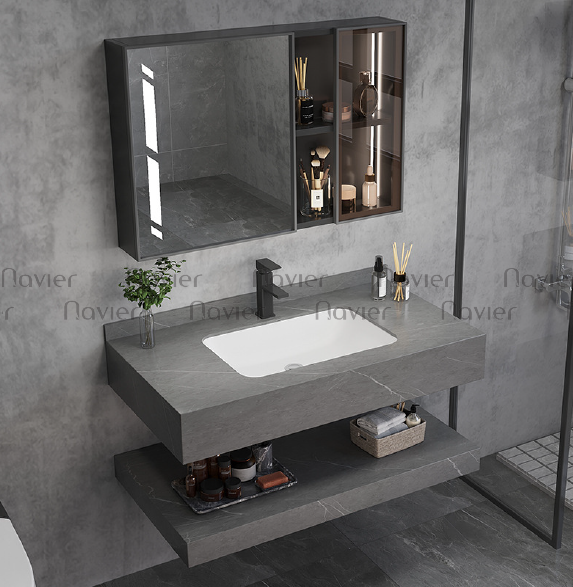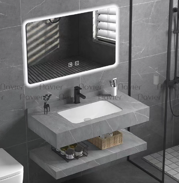 Bàn Đá Lavabo 2 Tầng Màu Xám Vân Trắng Chống Trầy Navier NV-1135X