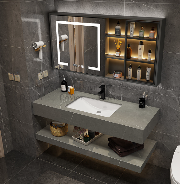 Bộ bàn đá lavabo + Tủ gương hiển thị giờ