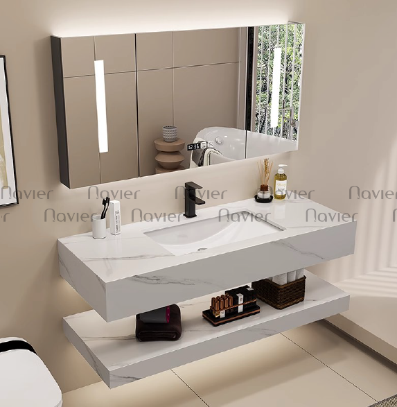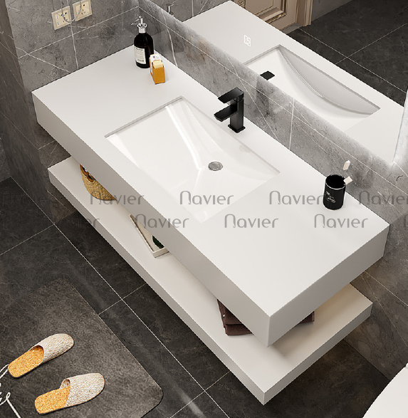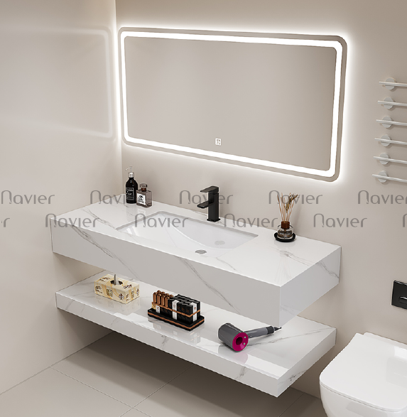 Bàn Đá Lavabo 2 Tầng Trắng Vân Mây Chống Trầy Navier NV-1135T
