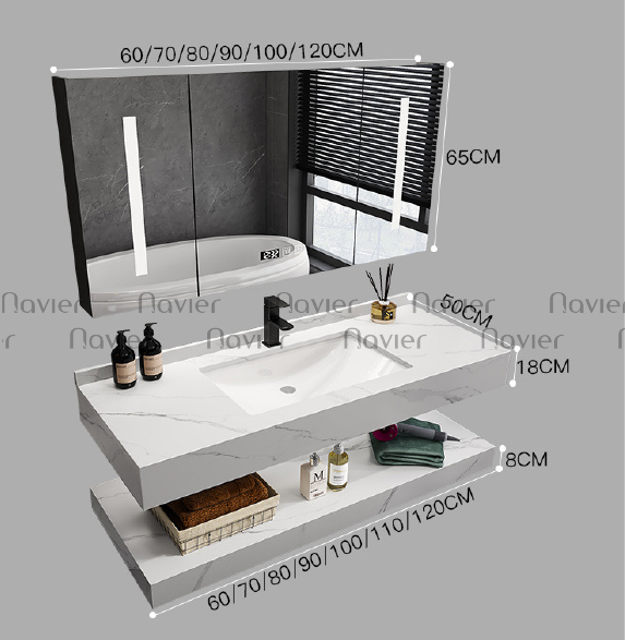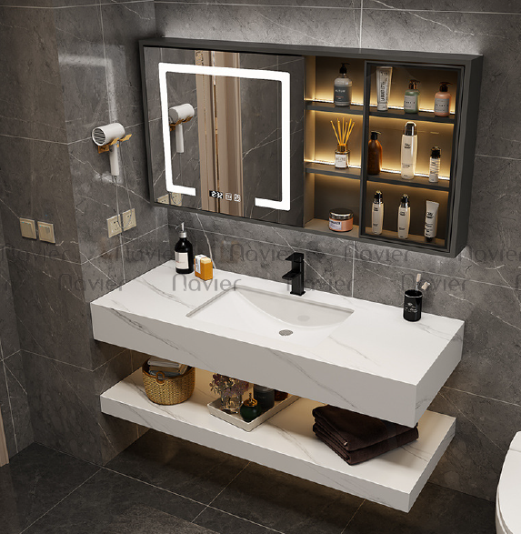 Bàn đá lavabo + Tủ gương led 3 cánh