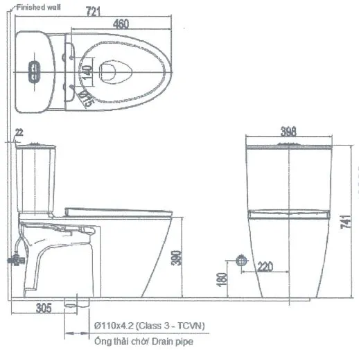 - Tâm thoát bồn cầu : 300mm (+-5)