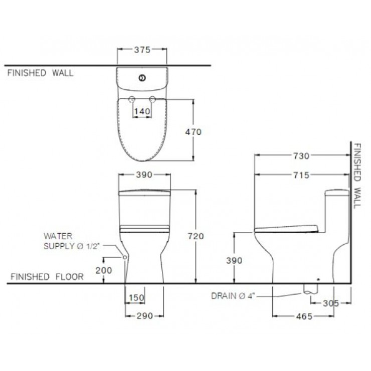 • Hệ thống xả Wash Down, tiết kiệm nước 3/ 4,5L