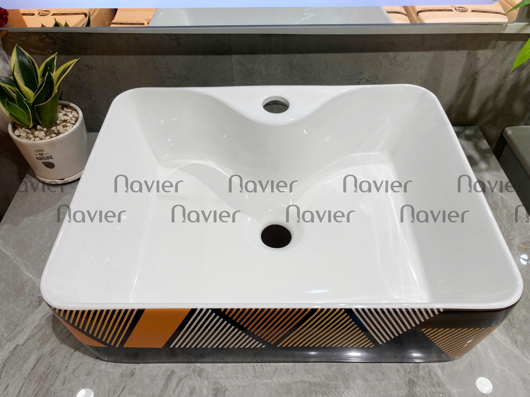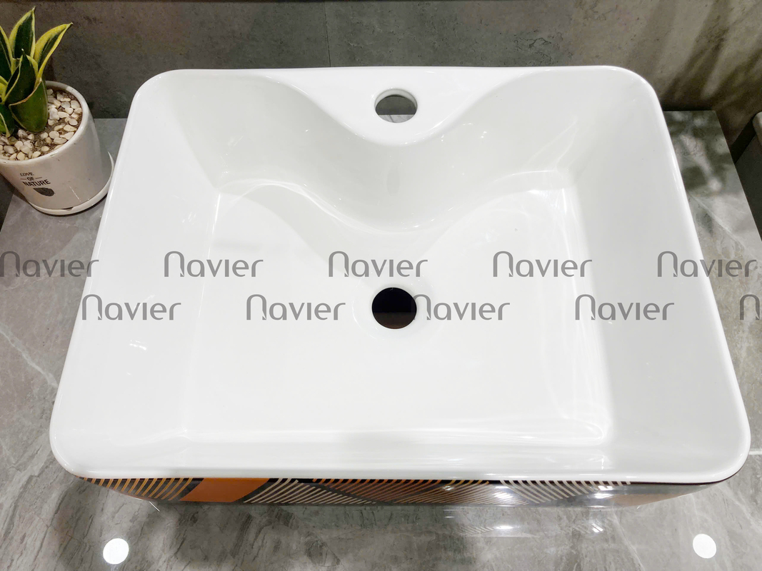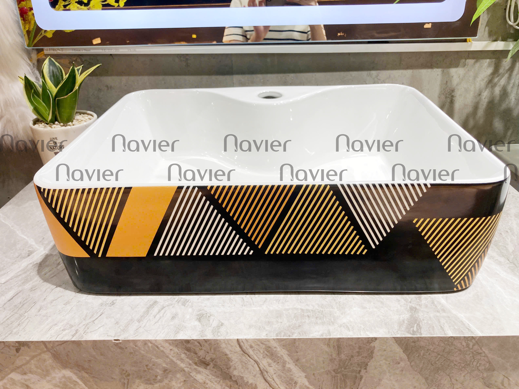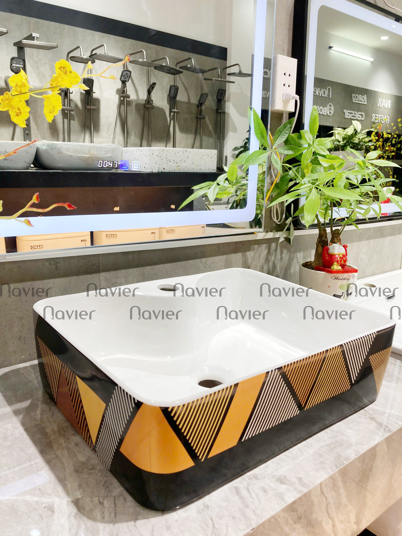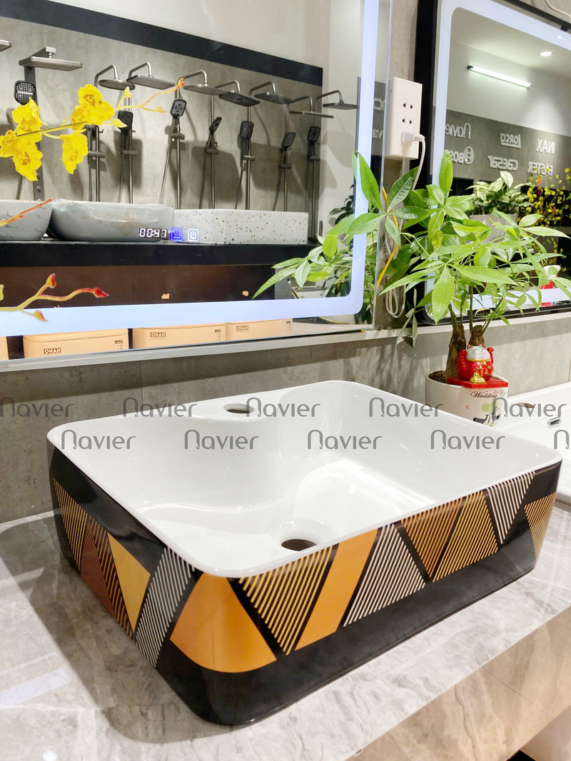 Chậu Lavabo Đặt Bàn Vuông Họa Tiết Tam Giác Navier NV-327 Đặt online giảm 200.000 đ