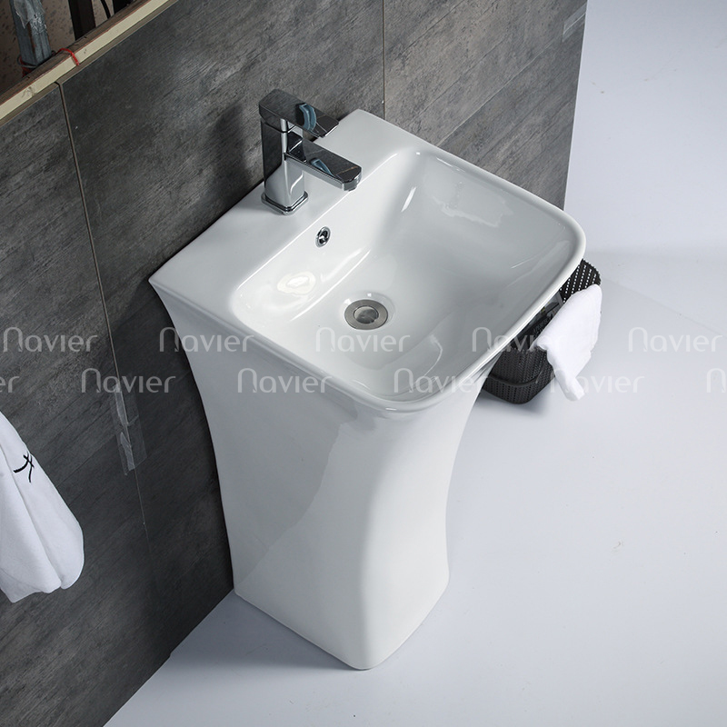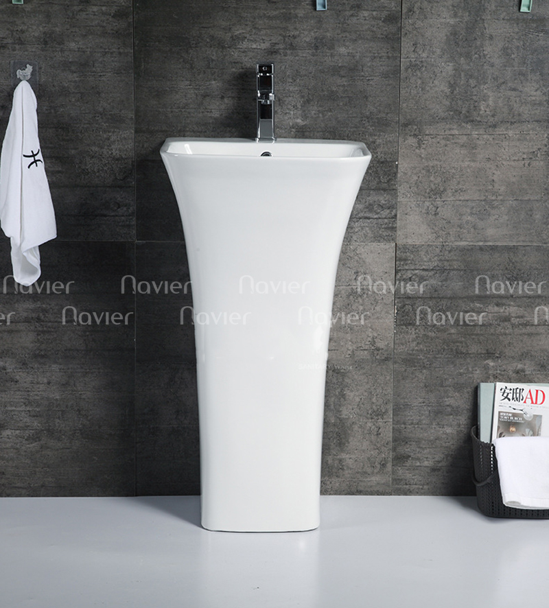 Chậu Lavabo Đứng Đặt Sàn Trắng Navier NV-347 có thể kết hợp linh hoạt với nhiều mẫu vòi lavabo đặt sàn hoặc vòi âm tường, giúp gia chủ dễ dàng lựa chọn theo phong cách thiết kế mong muốn. Khi kết hợp cùng vòi cao cấp, sản phẩm càng tôn lên vẻ đẹp sang trọng và đẳng cấp cho không gian phòng tắm.