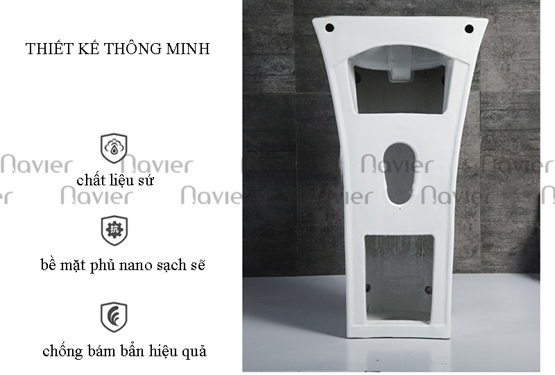 Chậu Lavabo Đứng Đặt Sàn Trắng Navier NV-347 được sản xuất từ sứ cao cấp nung ở nhiệt độ cao, cho kết cấu chắc chắn, độ bền vượt trội. Bề mặt chậu được phủ lớp men sứ sáng bóng, mịn màng, có khả năng: