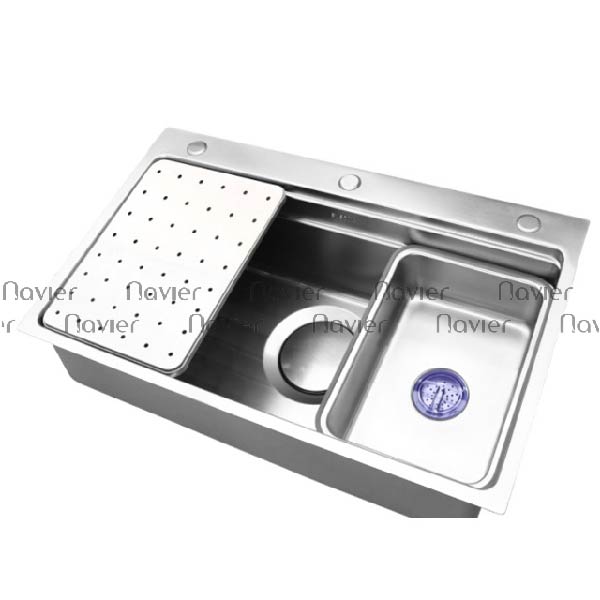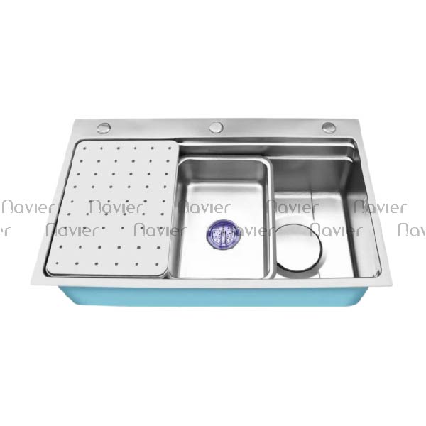 Chậu chén 2 ngăn lệch Inox 304 chuẩn 100% Navier NV-8245L