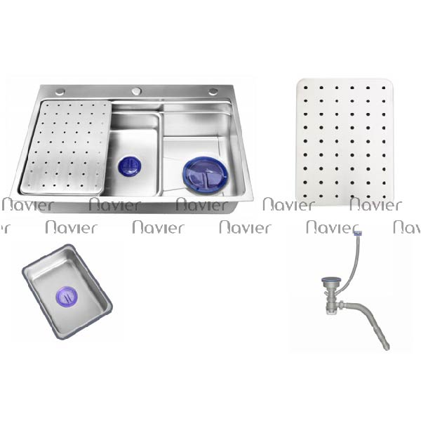 • Tặng kèm: 1 Thớt inox, 1 khay inox, 1 xi phông chậu