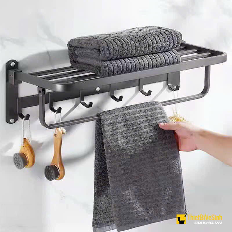 Sản phẩm giàn vắt khăn NV-115X thiết kế hiện đại & đa chức năng với kệ để đồ, thanh vắt khăn & móc treo tiện lợi giúp bạn sắp xếp các vật dụng trong phòng tắm một cách gọn gàng, ngăn nắp và không chiếm diện tích.