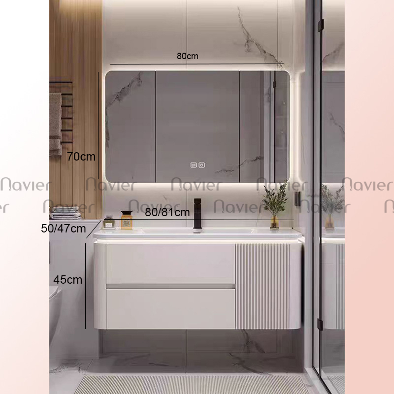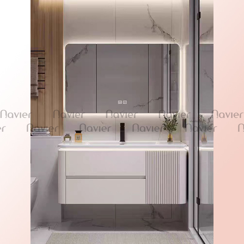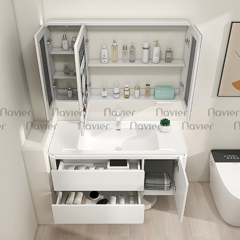 Tủ lavabo Navier NV-1801 được thiết kế với ngăn chứa rộng rãi giúp người dùng dễ dàng sắp xếp các vật dụng phòng tắm như khăn, mỹ phẩm, đồ vệ sinh cá nhân một cách gọn gàng.