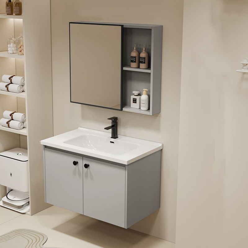 Tủ Lavabo Nhựa PVC Màu Xám Kèm Tủ Gương Navier NV-1116X
