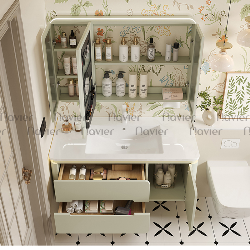 • Lưu trữ tiện ích: Với nhiều ngăn tủ thiết kế khoa học, người dùng có thể cất giữ mỹ phẩm, khăn tắm và đồ dùng cá nhân một cách ngăn nắp.
