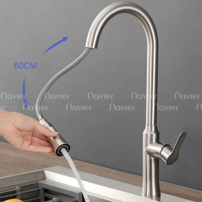 - Đầu vòi rút dây linh hoạt: Có thể kéo dài và điều chỉnh hướng dòng nước dễ dàng. Hệ thống dây rút tự động thu lại mượt mà, không xoắn, không kẹt.